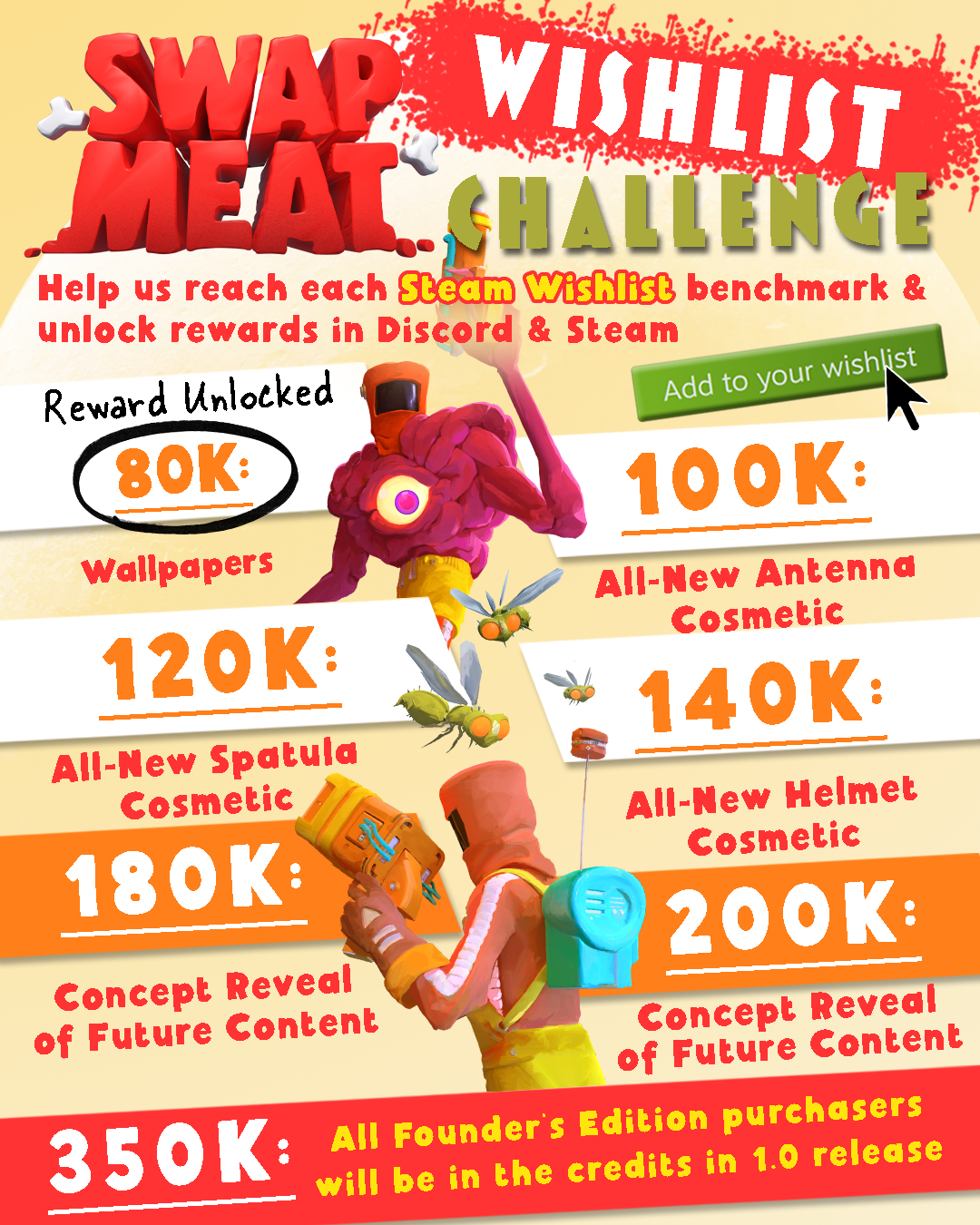 Playing the demo with your squad is just the beginning! Join our Wishlist Challenge to unlock exclusive rewards and boost your squad’s haul. Every milestone we reach together unlocks even more prizes for everyone, plus a sneak peek at upcoming content!